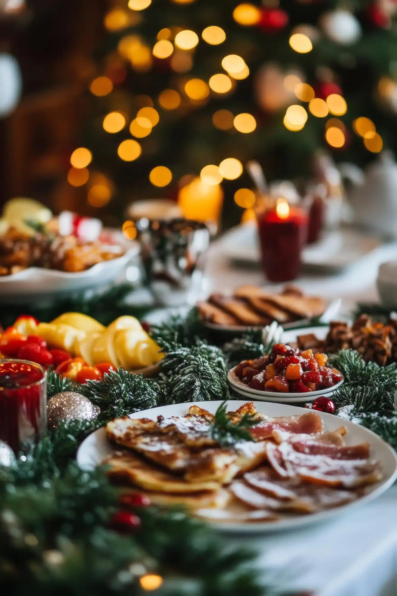Joulupöytä on katettu klassisilla jouluruoilla sekä itsetehdyillä lisukkeilla ja herkuilla.