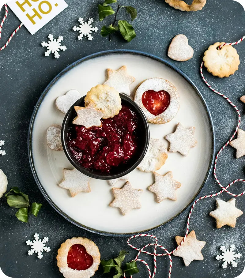 Joulubuffet sisältää maukkaita kylmiä ja lämpimiä ruokia sekä jälkiruokapöydän.
